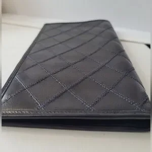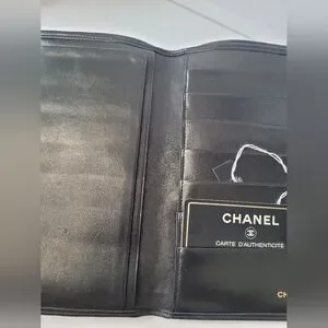 This Chanel bifold black Lambskin leather long wallet is a must-have for any fashion-forward woman. Crafted from high-quality materials, this wallet features a sleek black color that is perfect for any outfit. With its spacious design, it is perfect for carrying all of your essentials on the go.