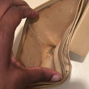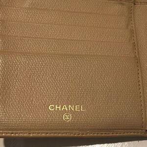 Chanel Bifold Compact Cardholder Wallet Beige Leather Luxury Minimalist CC Logo