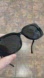 This sadly are too big for me. Serial number is on the arm of glasses. Lens do have some small scratches that are hard to tell unless your look. However, when I put them on I do not see the scratches. All crystals are In tact. I do not have the case. Color is black and white. Lens are not polarized.