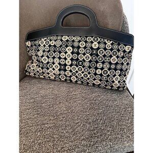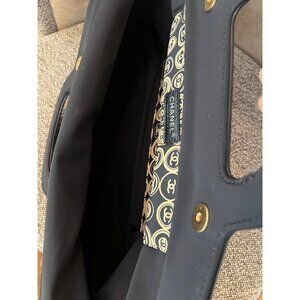 Chanel Black & Beige CC Coin Canvas Tote Bag With Leather Trim