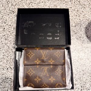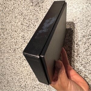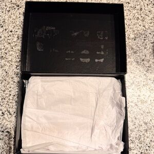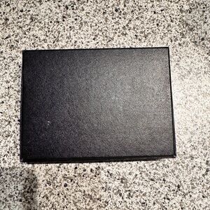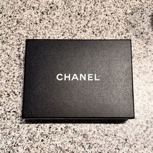 Elegant black Chanel box with white logo. Good for a compact wallet or makeup. Come with paper inside. Used with flaws. Wallet does not come with it but only included in pictures to show size.