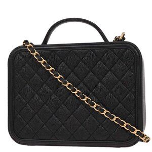 Chanel Black Calfskin CC Filigree 2way Vanity Handbag