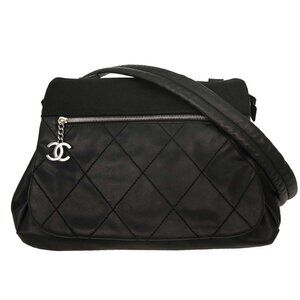 Chanel Black Calfskin Canvas Shoulder Bag