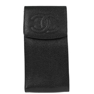 Chanel Black Calfskin Timeless Sunglasses Case Small Good