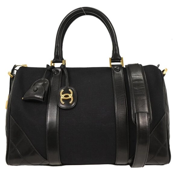 Chanel Black Canvas Lambskin Bicolore 2way Duffle Handbag 155094