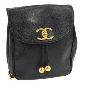 Chanel Black Caviar Backpack Vintage 2 Pocket Ball