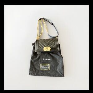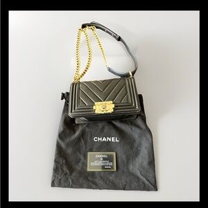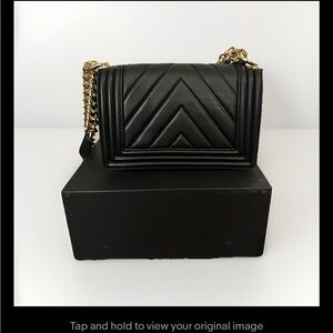 Chanel Black Chevron Crossbody Bag with Gold Accents Authentic small