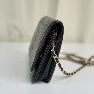 Chanel Black Chevron Quilted WOC Wallet on Chain Crossbody Bag with Gold Hardwar