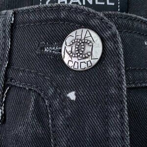 Chanel Black Denim Jeans With White Graphic Print & Button Detail