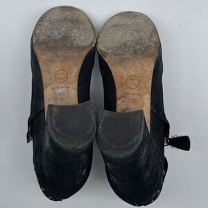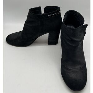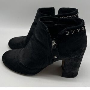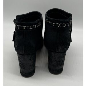 Chanel Black Distressed Suede Shimmer Chain-Link Bootie sz 38.5