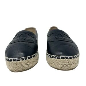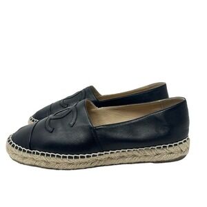 Chanel Black Espadrilles Leather Round Toe Slip On Shoes
