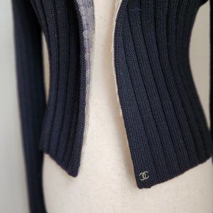 Chanel Black Evening Cardigan Sweater w/paillettes; Wool/Silk Sml (US 4-6; 40)