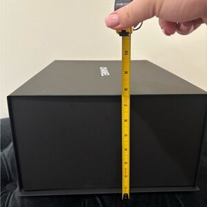 Sleek black Chanel box featuring a bold white logo. Perfect for gifting.