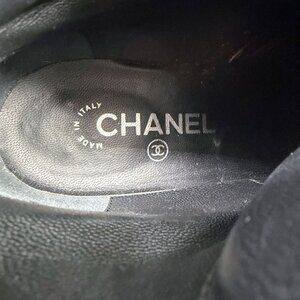 Chanel Black Glitter Leather CC Cap Toe Combat Boots Size 39 US 8–8.5 Women's