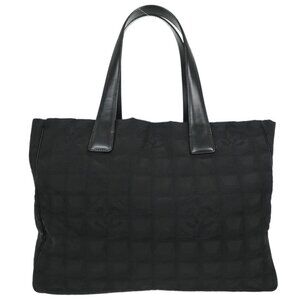 Chanel Black Jacquard Nylon Travel Line Tote Handbag