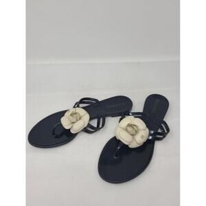 Chanel Black Jelly Camellia Interlocking CC Thong Sandals 40 EU