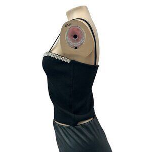 Vintage Chanel Black Knit Cropped Cami Top Rhinestone Trim Neck Spaghetti Straps Women S