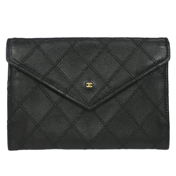 Chanel Black Lambskin Bicolore Wallet Coin Purse 125557