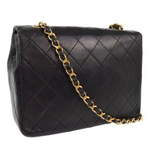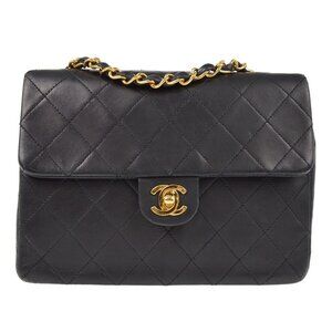 Chanel Black Lambskin Classic Square Flap Shoulder Bag