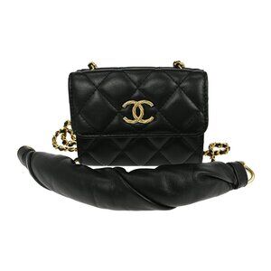 Chanel Black Lambskin Single Chain Shoulder Wallet Bag NQ00800