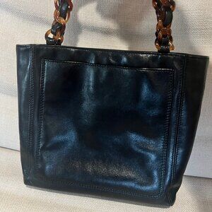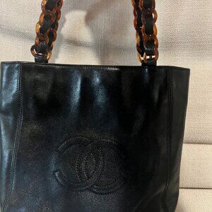 Chanel Black Lambskin Small Tote With Leather Interwoven Tortoise Resin Chains