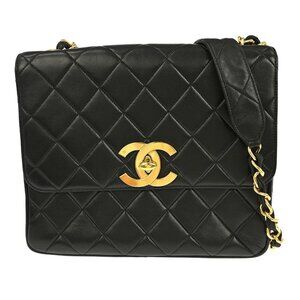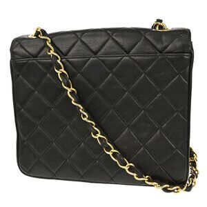 Chanel Black Lambskin Straight Flap Shoulder Bag
