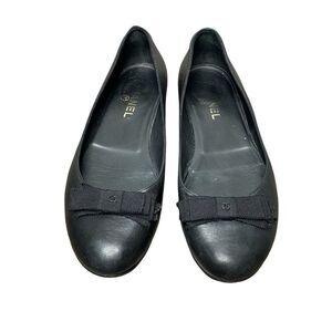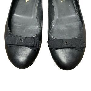 Chanel Black Leather CC Bow Ballet Flats EU 40 US 9 Ballerina Flats