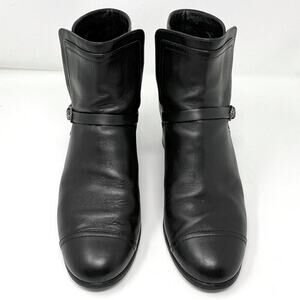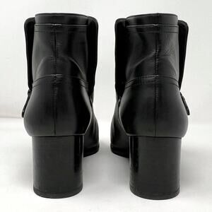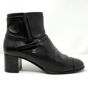 Chanel Black Leather Cap Toe Silver Buckle Ankle Boots 38.5