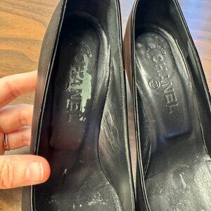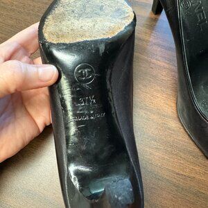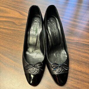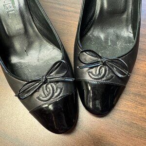 Chanel Black Leather Logo CC Cap Toe Pumps 7.5/37.5