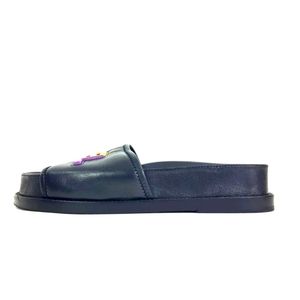 Chanel Black Leather Logo Letters Slides Sandals Size 37