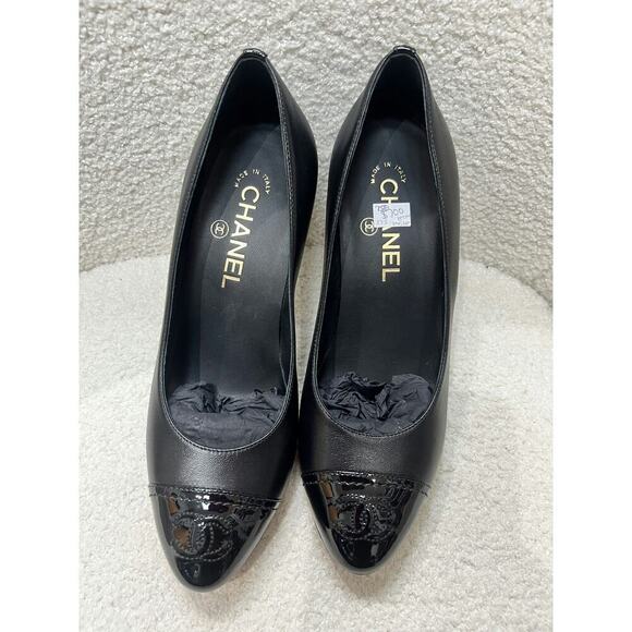 Color: Black with patent leather cap toe and embossed CC logo