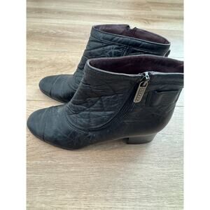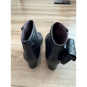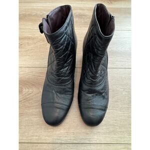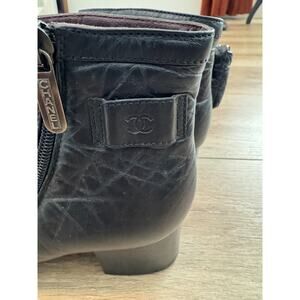 Chanel Black Leather Quilted Ankle Boots Block Heel Size EU 37 1/2 CC