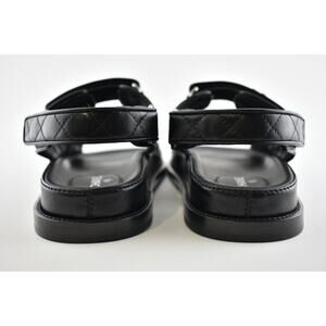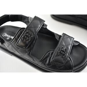 Chanel REV Black Leather Quilted Chain CC Logo Mule Slide Strap Flat Dad Sandal 39.5