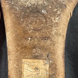 Chanel Black Leather Ruffle Slip on Almond Toe Ballet Flats Size 39