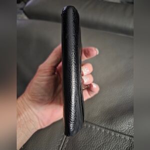 Chanel black leather wallet with iconic logo. Elegant and stylish.