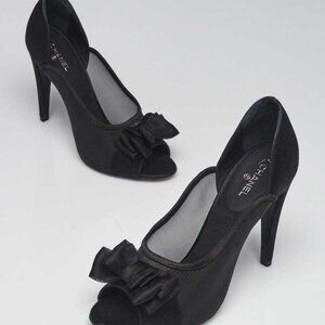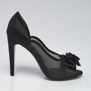Chanel Black Mesh and Satin Bow Peep Toe Pumps Size 10.5/41