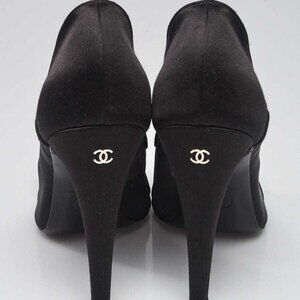 These chic yet vintage Chanel Black Satin/Mesh Bow Peep Toe Pumps are a great addition to any wardrobe! These pumps shoes feature black satin with an adorable bow with the CC logo. These sexy peep toe pumps also have a sturdy heel and beige mesh side panels. This is a fabulous style any fashionista would not want to miss! Retail price is $850.