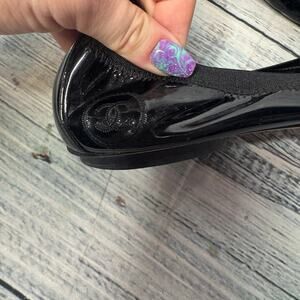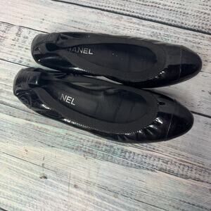 Chanel flats, Chanel ballet flats, patent leather shoes, CC logo flats, designer flats, luxury shoes, made in Italy, black ballet shoes, Chanel size 41, authentic Chanel