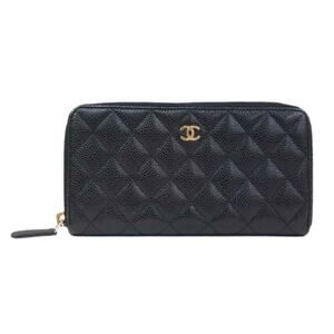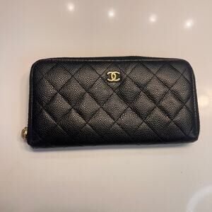 Chanel Black Quilted Caviar L-Gusset Zip-Around Wallet