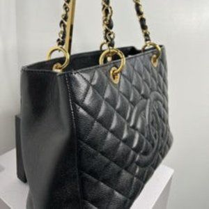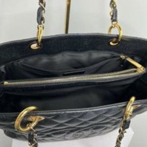 Authentic Chanel Black Quilted Caviar Leather Grand Tote