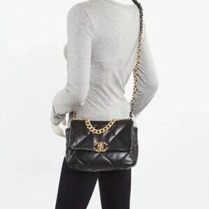 Chanel Black Quilted Goatskin Leather Medium Chanel 19 Bag