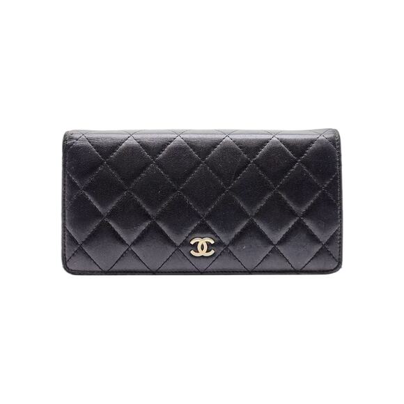 Chanel Black Quilted Lambskin Leather L Yen Continental Wallet - Preowned