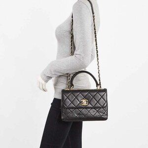 Chanel Black Quilted Lambskin Leather Small Trendy Bag