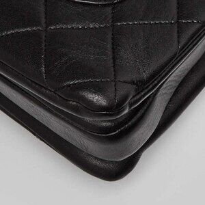 The exterior is clean throughout but appears to have been re-dyed. The leather has wrinkled and shows creasing in some areas. The CC turnlock has surface scratches. Protective plastic remains on the Chanel nameplate. The interior is clean with light signs of use. The bag has a musty scent. Overall it remains in good condition.