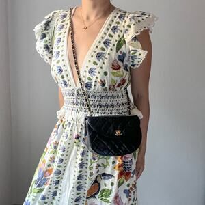 The lambskin leather has the signature Chanel diamond quilted pattern. All the hardware is 24K gold plated . This bag can be worn as a shoulder bag or crossbody bag.