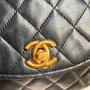 Chanel Black Quilted Lambskin Vintage Crescent Flap Bag