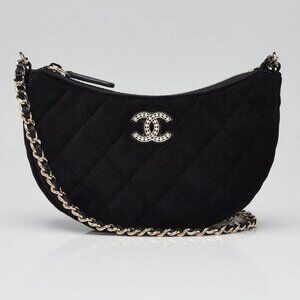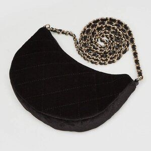Chanel Black Quilted Velvet Crystal Chain Hobo Bag