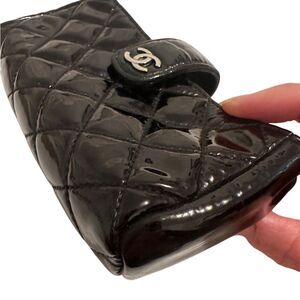Elegant black quilted wallet with iconic Chanel logo. Perfect for any occasion.