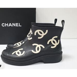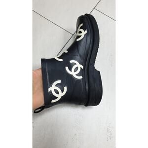 Chanel Black RubberInterlocking CC Logo Rain Boots Sz 37