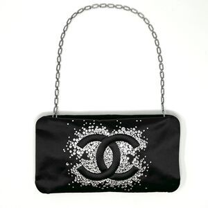 Chanel clutch, black satin bag, crystal CC bag, designer evening bag, luxury resale, Chanel shoulder bag, wedding clutch, cocktail purse, rare Chanel, vintage‑style Chanel, chain strap clutch, Swarovski crystal bag, event bag.